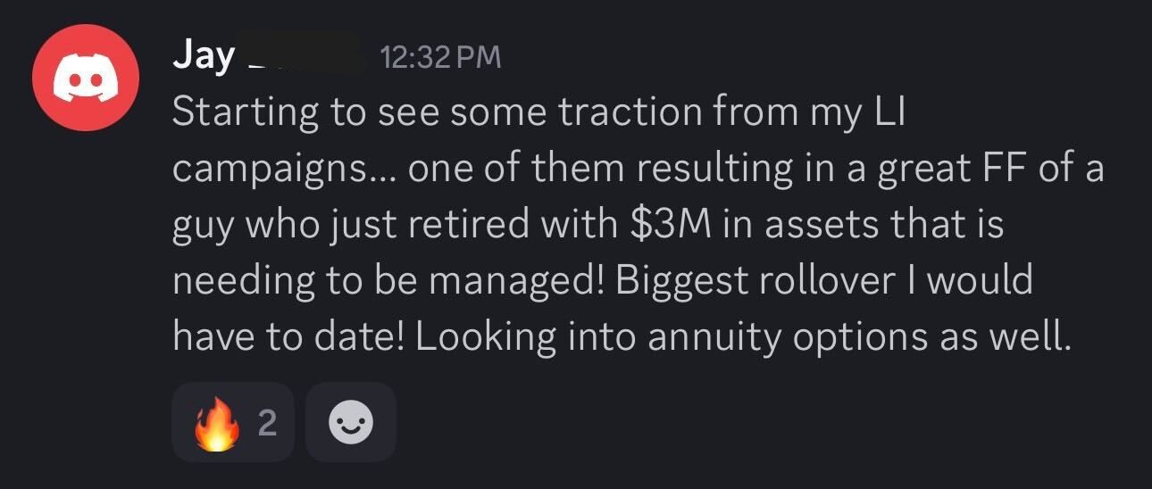 This isn’t a course. It’s not coaching. And it’s definitely not fluff. This is a high-converting system — tested by hundreds of advisors — that puts high-quality prospects on your calendar each week. You just show up to the calls.